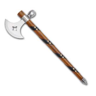 This 19" hardwood handled peace pipe/tomahawk features a 4 3/4" stainless steel axe blade and a faux tobacco pipe just like what the plains Indians used. The leather wrapped handle with brass accents is a perfect conversation piece. But don't let that fool you, this tomahawk is sharp!