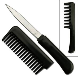 Black Comb With Hidden Knife. This item looks like a standard black plastic comb. Pull off the top to reveal a sharp 3.25" single edged blade! Specifications: Overall Length: 6.5 Inches Blade Length: 3.25 Inches Approx.