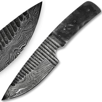 Blank Blade Grooved Damascus Steel Knife Full Tang 1095HC Make your Own Handle This is a beautifully crafted White Deer Blank Blade Custom Grooved Damascus Steel Knife. Damascus for this knife was created by forge welding multiple layers of steels into a Solid block called a billet (15N20 &1095 High Carbon Tool Steels). The billet is folded and re-welded several times to produce several layers. Patterns are created by manipulating the steel during the forge welding process. When acid is added to the blade, it attacks the layers of hard and soft steels differently, highlighting the attractive layered pattern in the Steel.The combination of layered hard and soft steel creates blade flexibility, toughness and produces invisible serrations on the blade that aid cutting. The hardness of the Damascus steel is 55-60 HRC on Rockwell scale. The handle is full tang,This White Deer Custom Grooved Damascus Blank Blade Steel Knife comes with a genuine leather sheath, with a belt loop on one end. This knife is a must have for any hunter or outdoors-man! SpecificationsOverall Length: 8 InchesBlade Length: 4.25 InchesBlade Width: 1.675 InchesBlade Material: Damascus Steel, 1095 High Carbon, 15N20 AlloyBlade Thickness: 4.5mmTang: Full Tang, Blank Blade Carbon SteelSharpness & Functionality: Very Sharp, Functional SkinnerHardness or Temper: 55-60 HRC Rockwell ScaleBlade Features: Drop Point Profile, Grooved BladeHandle Length: 4 Inches Composite, Grooved Grip, Comes With Leather Sheath You Can Make your Own Handle