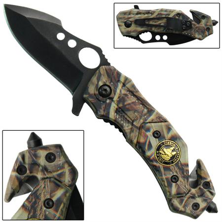 Officially Licensed US Army Spring Assisted Tactical Survival Knife BLACK