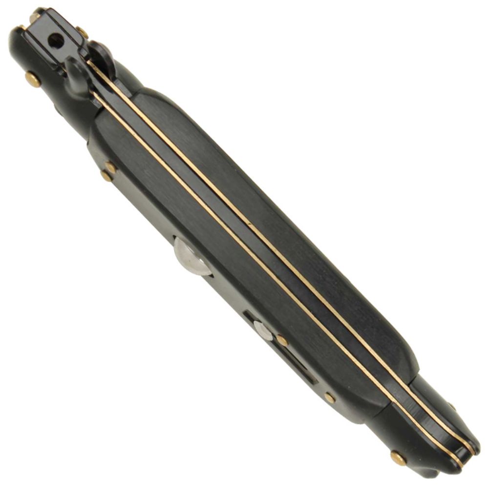The handle of this knife is designed with a black finish, complemented by brass bolstered pin and inner liner. The black outer framing adds a stylish touch to the overall look. With a locking mechanism in place, you can be assured that the knife will not open automatically, ensuring safety and convenience.
